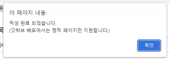 <button onclick="alert('작성 완료 되었습니다.<br>(깃허브 배포에서는 정적 페이지만 지원합니다.)')">작성 완료</button>